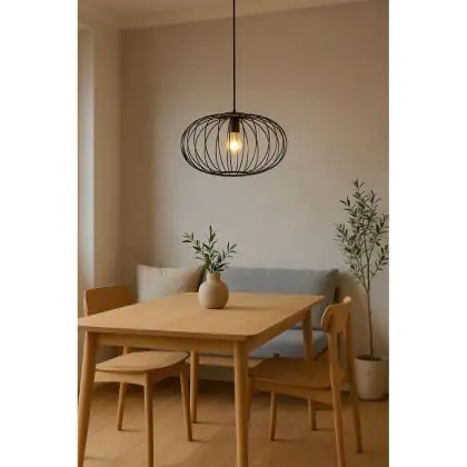 Die D'Lite Pendelleuchte aus der Kemmel-Serie ist ein Qualitätsprodukt zu einem niedrigen Preis. Die Pendelleuchte überzeugt mit einem modernen und ästhetischen Design. Sie besteht aus einem Metallrahmen mit einer Lampenschraube aus Kunststoff. Geeignete Anwendungsbereiche sind beispielsweise Wohn-, Gaststätten- und Büroräume. Hinweis: Die D'Lite Produkte kommen in einer umweltfreundlichen Verpackung (ohne Plastik, stattdessen 100% recycelter Karton) daher. Alle benötigten Befestigungsmaterialien wie Schrauben sind im Lieferumfang enthalten. Jedoch müssen Sie eine E27 Lampe separat kaufen.