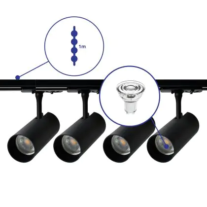 | Herstellername | Complete Straight 1-meter 1-Phase Track Set Black incl. 4x Spot fixture + GU10 2700K 3W Dim - 1 Mete | |