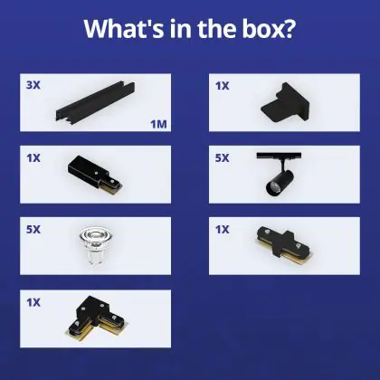 Komplettset 1-Phasen Rail L 1 x 2 Meter Schwarz | incl. 5x Spot + GU10 2700K 3W Dimmbar + Abschlusskappe, Stromanschluss und L -Verbinder