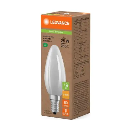 Ledvance LED Classic E14 Kerze Fadenlampe Matt 1.2W 255lm - 827 | Ersatz Für 25W