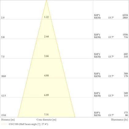 Der Abstrahlwinkel bezeichnet den Winkel, in dem das Licht aus der Lichtquelle ausgestrahlt wird. Er wird in Grad (D) angegeben. Je geringer die Gradzahl des Abstrahlwinkels ist, desto kleiner ist auch der Durchmesser des Lichtkegels, den die Lichtquelle produziert.