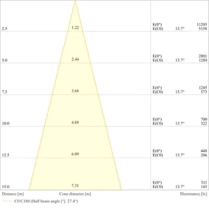 Der Abstrahlwinkel bezeichnet den Winkel, in dem das Licht aus der Lichtquelle ausgestrahlt wird. Er wird in Grad (D) angegeben. Je geringer die Gradzahl des Abstrahlwinkels ist, desto kleiner ist auch der Durchmesser des Lichtkegels, den die Lichtquelle produziert.