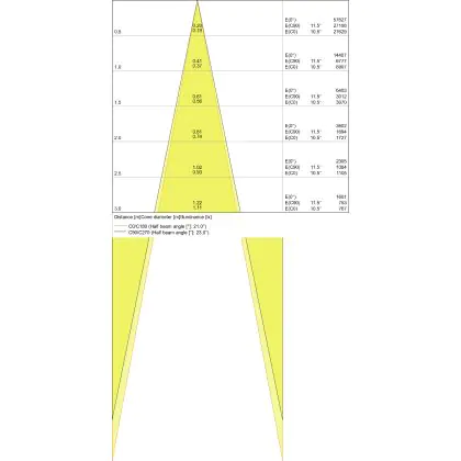 Der Abstrahlwinkel bezeichnet den Winkel, in dem das Licht aus der Lichtquelle ausgestrahlt wird. Er wird in Grad (D) angegeben. Je geringer die Gradzahl des Abstrahlwinkels ist, desto kleiner ist auch der Durchmesser des Lichtkegels, den die Lichtquelle produziert.