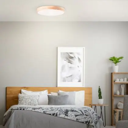 Brilliantline Plafonnier Métal Bois Plastique Bois Blanc 34W 3800lm - 830-865 CCT | 500mm - Télécommande Dimmable