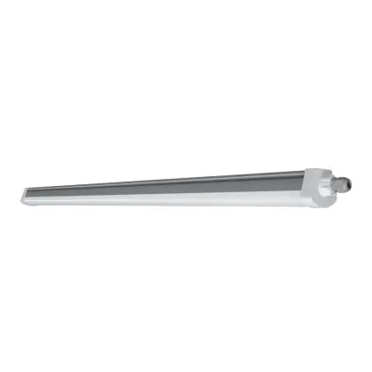 La réglette LED, Ledvance Réglette LED Étanche Imperméable Compact 55W 6700lm - 840 | 150cm est conçue pour remplacer les réglettes TL-D traditionnelles et permettant d’économiser jusqu’à 50% d’énergie. Très souvent utilisé pour l’éclairage d’entrepôts, d’usines, de parking et d’autres grands espaces extérieurs. Très simple d’installation, cette réglette de 150cm peut se fixer au plafond et au mur et projette 4000K - Blanc Froid, comme couleur de lumière. La Ledvance Réglette LED Étanche Imperméable Compact 55W 6700lm - 840 | 150cm dispose d’un indice de protection IP66 à l’eau et la poussière et d’une résistance aux chocs IK08.