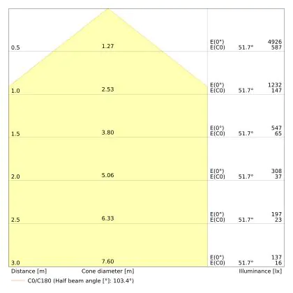 • Angle de diffusion: 100 °
