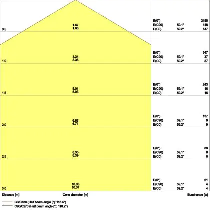Le code couleur se compose de l'indice de rendu des couleurs (IRC) et de la température de couleur (Kelvin). Le premier chiffre indique le rendu des couleurs (1 = très mauvais rendu des couleurs, 9 = meilleure authenticité des couleurs). Le deuxième et troisième chiffre indiquent la température de la couleur. Exemple : Le code couleur "830" indique que la lampe a un bon rendu des couleurs (8) et une couleur de lumière blanche chaude (30 = 3000K). |
