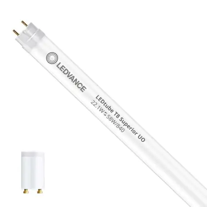 Ce tube LED Ledvance tube LED 150cm | 4000K 22.1W - Superior UO est l’un des produits les plus éconergétiques en remplacement des tubes T8 classiques. Avec ce tube LED vous êtes donc assuré de sa qualité. Avec une puissance de seulement 22.1 W, ce tube LED a la même intensité lumineuse qu’un tube classique qui consomme 58 W.