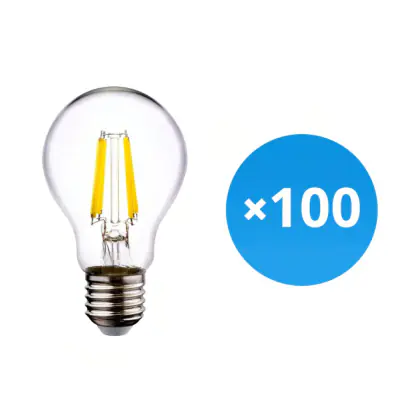 Description Lot 100x Budgetlight Lucent LED E27 Poire Filament Claire 4.5W 470lm - 840 Blanc Froid | Équivalent 40W