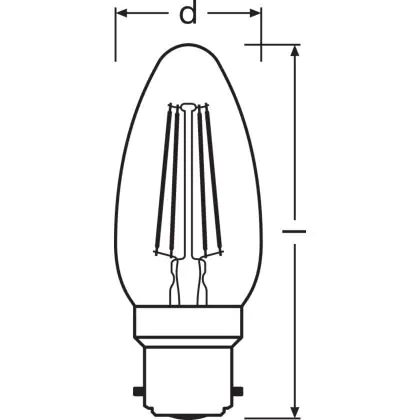 Description Osram Classic LED B22d Bougie Filament Claire 4W 470lm - 827 | Remplacement 40W
