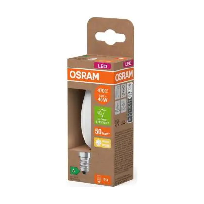 Description Osram LED Classic E14 Bougie Filament Dépolie 2.2W 470lm - 827 | Remplacement 40W
