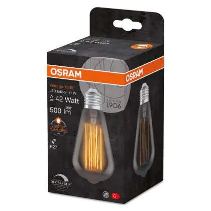 Cette ampoule Osram Vintage 1906 LED E27 Edison Filament Smokey 11W 500lm - 818 Extra Warm White | Dimmable avec son efficacité lumineuse de lumen par watt vous permettra de profiter d’un éclairage de qualité. Avec sa durée de vie de 15000 heures, vous n’aurez pas à vous soucier de son remplacement avant quelques années.