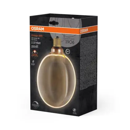 Cette ampoule Osram Vintage 1906 LED E27 Globe Filament Dorée 183mm 4W 220lm - 818 | Dimmable - Remplacement 22W avec son efficacité lumineuse de lumen par watt vous permettra de profiter d’un éclairage de qualité. Avec sa durée de vie de 25000 heures, vous n’aurez pas à vous soucier de son remplacement avant quelques années.