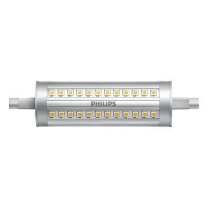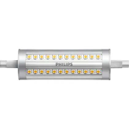 Philips Corepro LED Lineair R7s 118mm 14W 2000lm - 830 Blanc Chaud | Dimmable - Équivalent 120W est une ampoule tubulaire linéaire à double extrémité. Ce type d’ampoule permet de délivrer une lumière homogène à 360° avec comme température de couleur 3000K - Blanc Chaud. Cette ampoule LED R7s de chez Philips est la solution idéale pour le remplacement de vos anciennes ampoules halogènes. Cette ampoule LED n’a pas besoin de transformateur, elle fonctionne avec 230V et peut se connecter directement sur le secteur électrique.