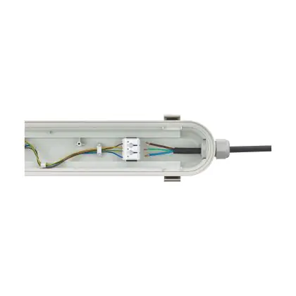 La réglette LED, Philips Réglette LED Étanche Coreline 25W 4000lm - 840 | 60cm - Dali Dimmable - Remplacement 2x18W est conçue pour remplacer les réglettes TL-D traditionnelles et permettant d’économiser jusqu’à 50% d’énergie. Très souvent utilisé pour l’éclairage d’entrepôts, d’usines, de parking et d’autres grands espaces extérieurs. Très simple d’installation, cette réglette de 60cm peut se fixer au plafond et au mur et projette 4000K - Blanc Froid, comme couleur de lumière. La Philips Réglette LED Étanche Coreline 25W 4000lm - 840 | 60cm - Dali Dimmable - Remplacement 2x18W dispose d’un indice de protection IP65 à l’eau et la poussière et d’une résistance aux chocs IK08.
